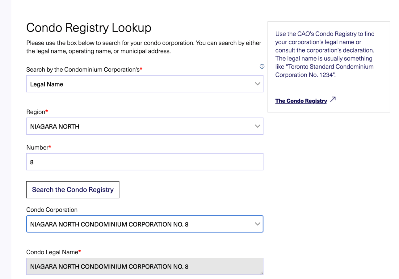 Step 3: Search and Select Your Condo Corporation