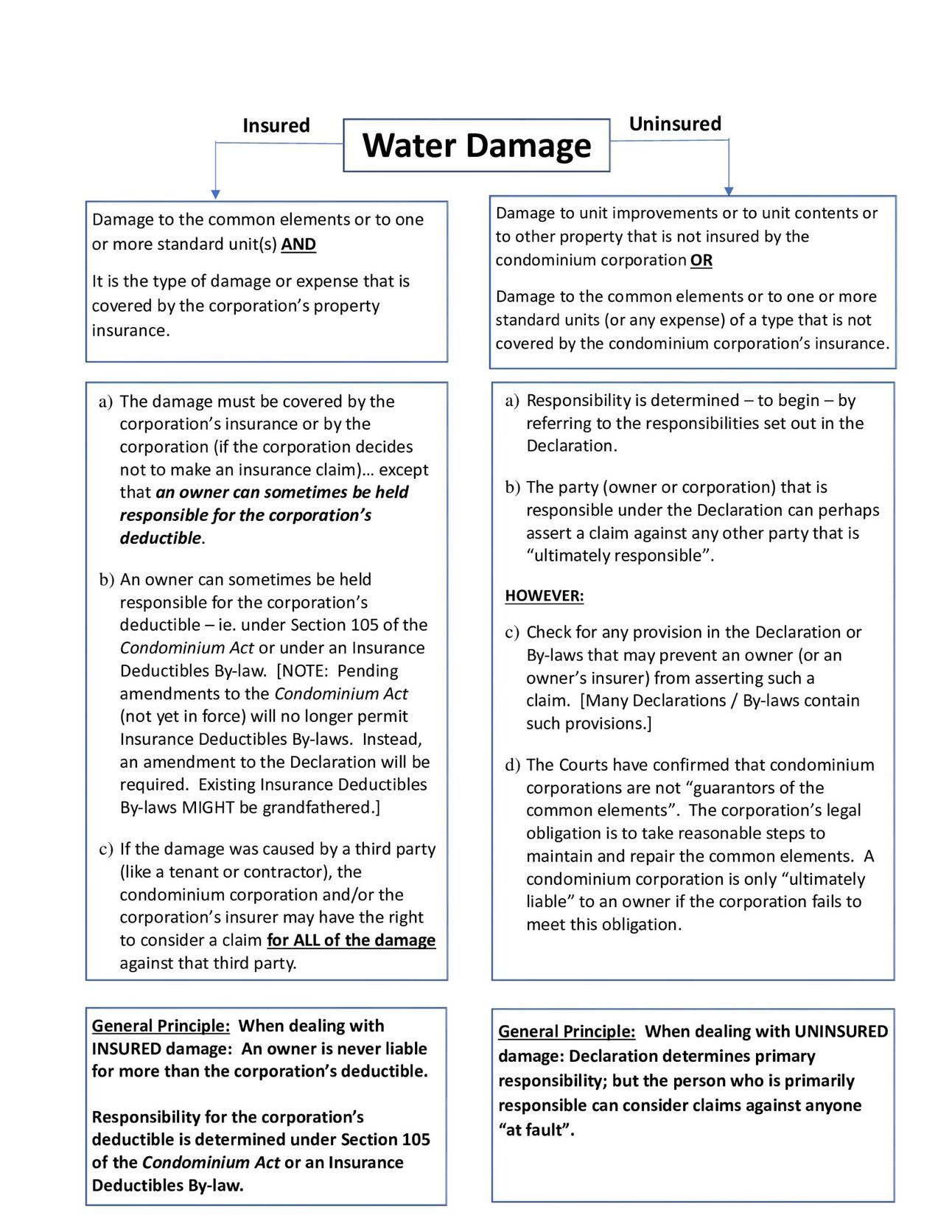 Living in a condo means shared walls and sometimes shared plumbing. Figuring out who pays for water damage can vary by building. Start by reviewing your condo's Declaration to see what's your responsibility and what falls on the condo corporation.